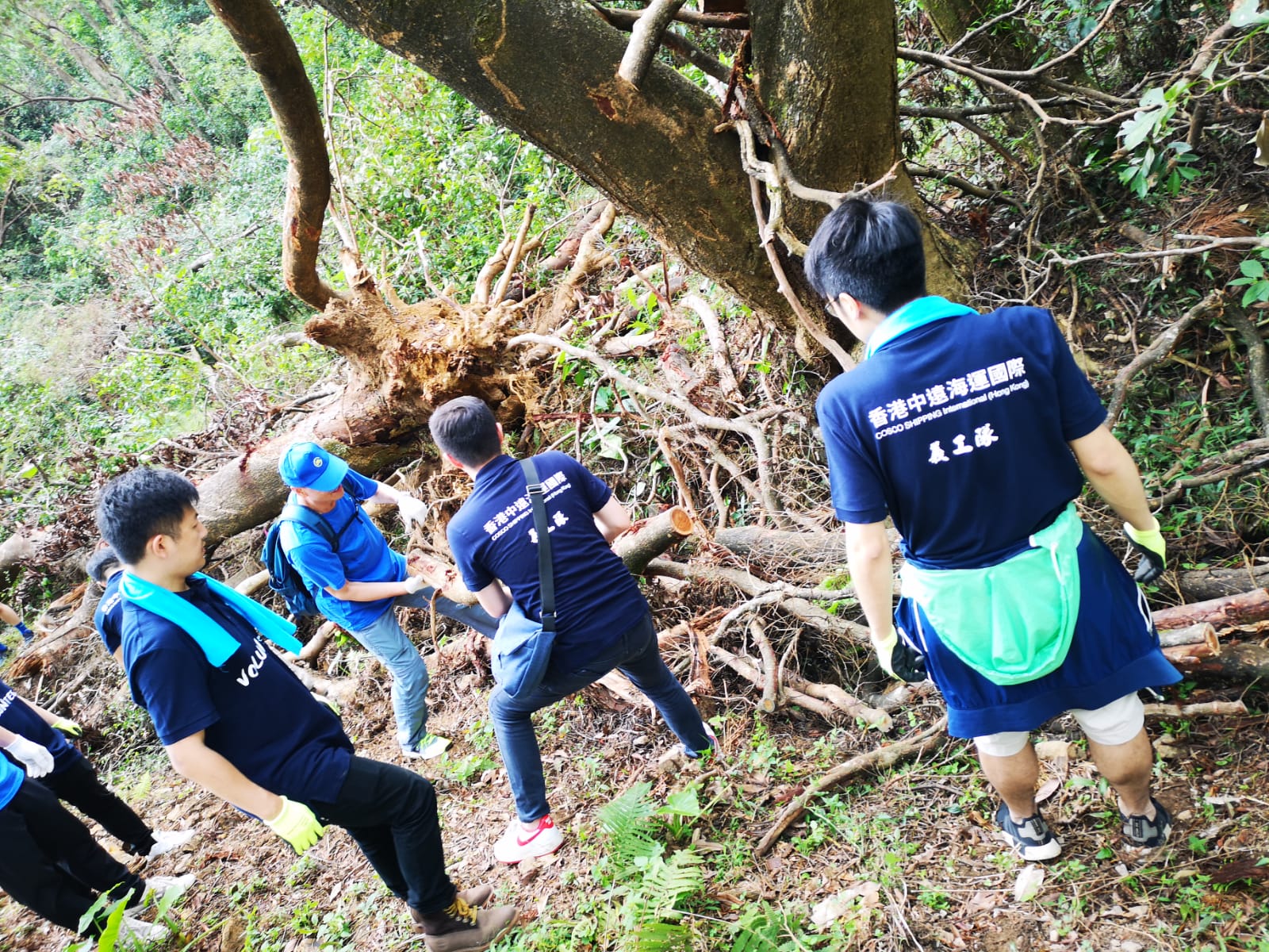 中資企業員工清理麥理浩徑9段上的斷樹殘枝。(圖片來源:中央政府駐港聯絡辦)