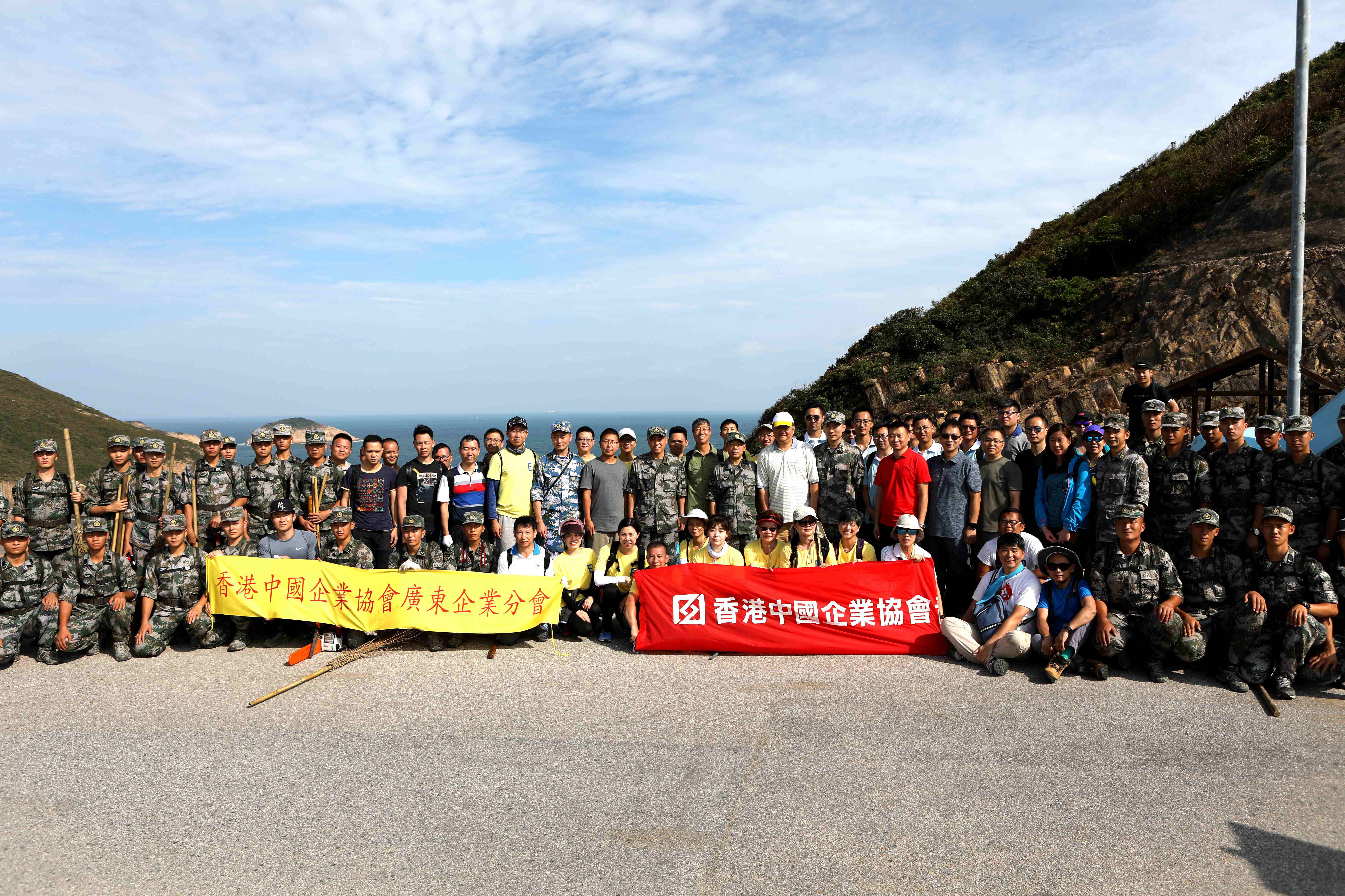 中資企業員工清理麥理浩徑9段溝渠。(圖片來源:中央政府駐港聯絡辦)
