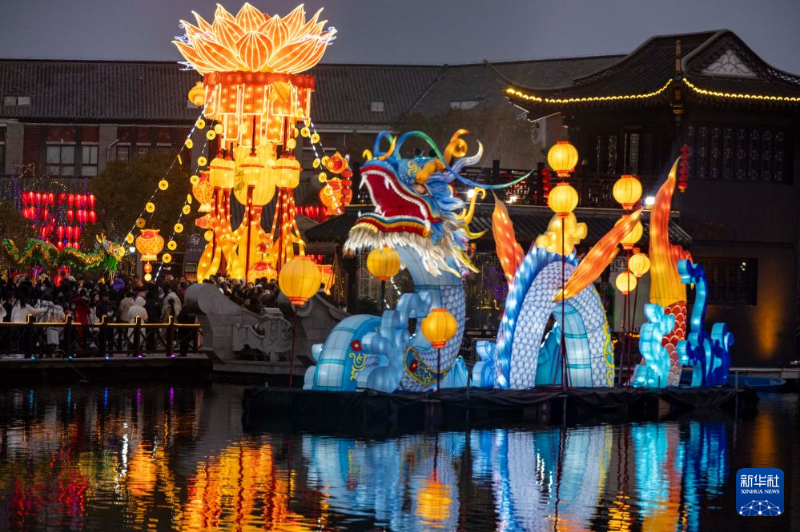 人們在江蘇省泰州市姜堰區人民公園新春燈會上賞燈(2024年2月7日攝)。