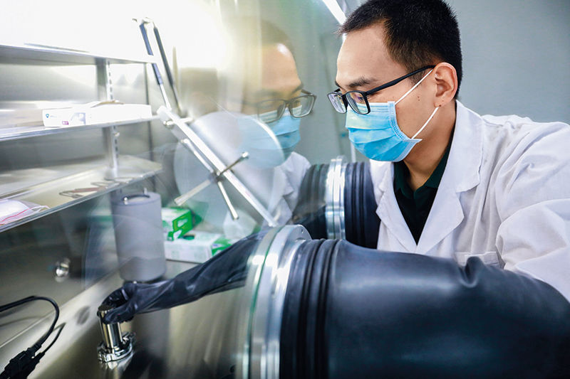2021年9月,科研人員在位於廣東東莞的松山湖材料實驗室研究月壤樣品。