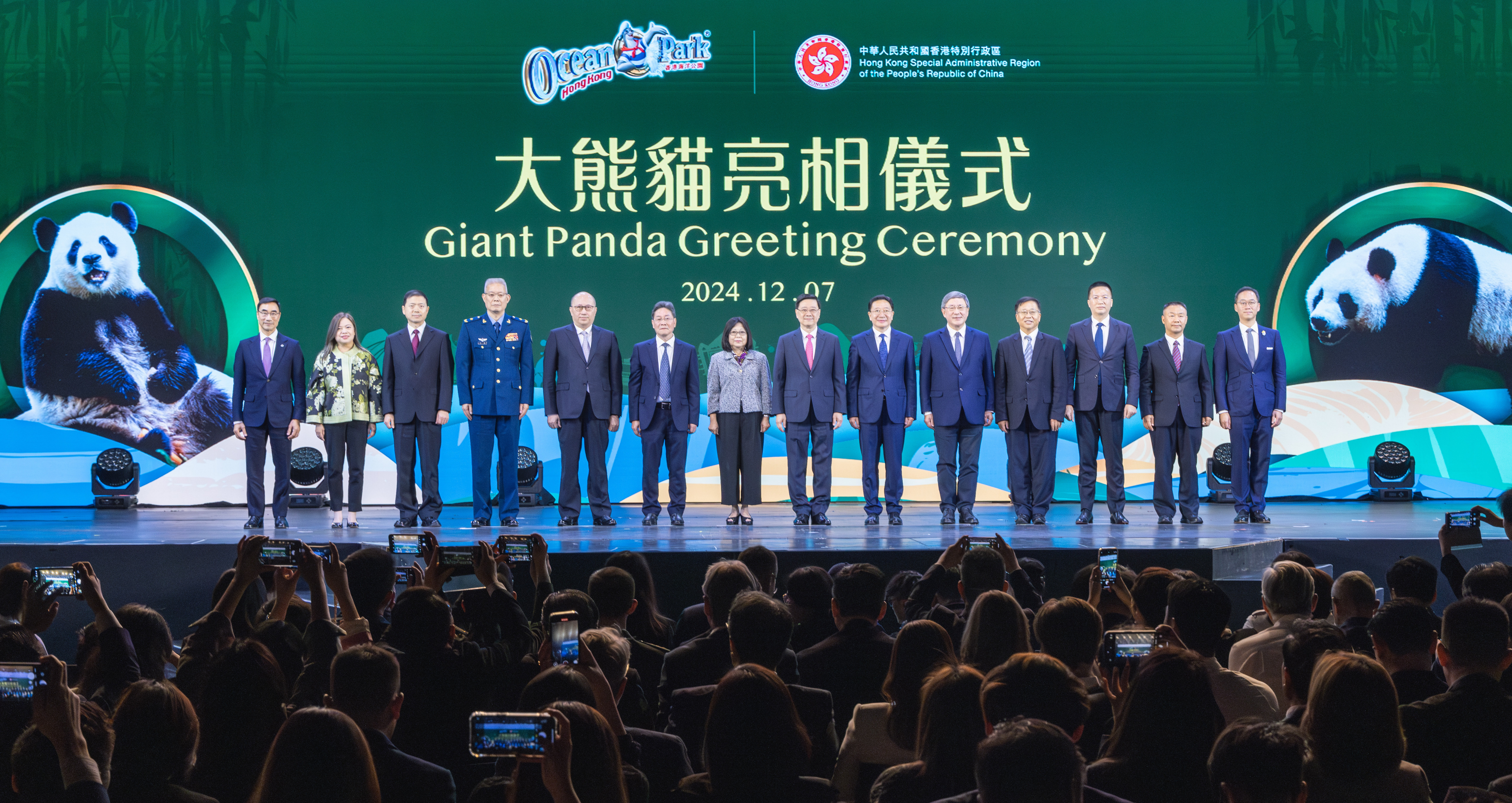 本網訊 12月7日,香港特區政府在海洋公園舉行中央政府贈港大熊貓亮相儀式。香港特區行政長官李家超,中央港澳辦、國務院港澳辦分管日常工作的副主任周霽,中央政府駐港聯絡辦主任鄭雁雄,外交部駐港公署特派員崔建春,國家林業和草原局副局長李雲卿等出席。