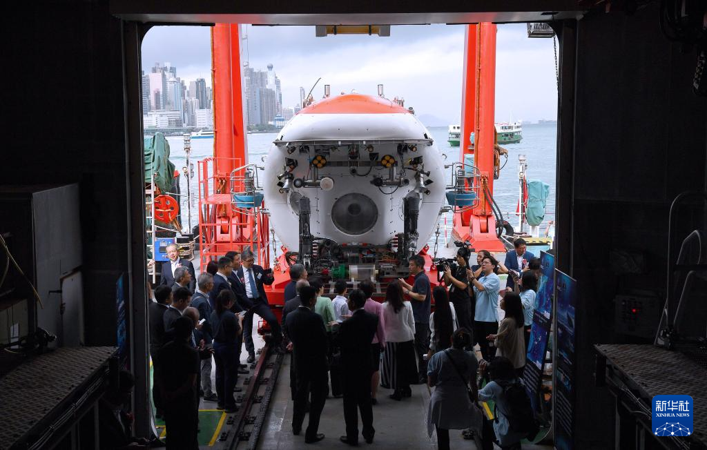 9月24日在首次訪問香港的「深海一號」遠洋科考船上拍攝的「蛟龍號」。新華社記者 陳鐸 攝