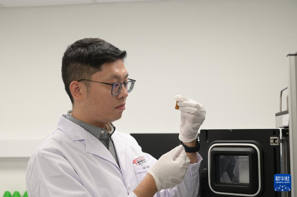 10月14日,香港城市大學博士後王琪在檢驗樣品。新華社記者 譚佳銘 攝
