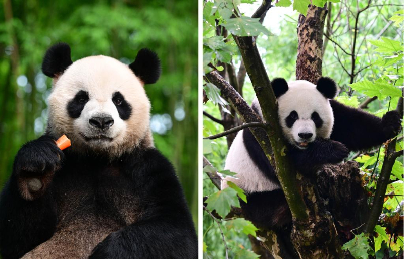 拼版照片:左為大熊貓「安安」,右為大熊貓「可可」。新華社發(中國大熊貓保護研究中心供圖)