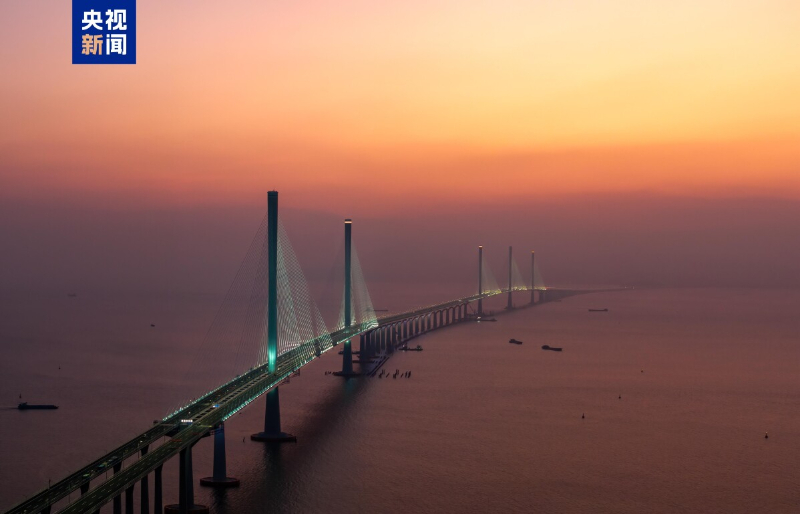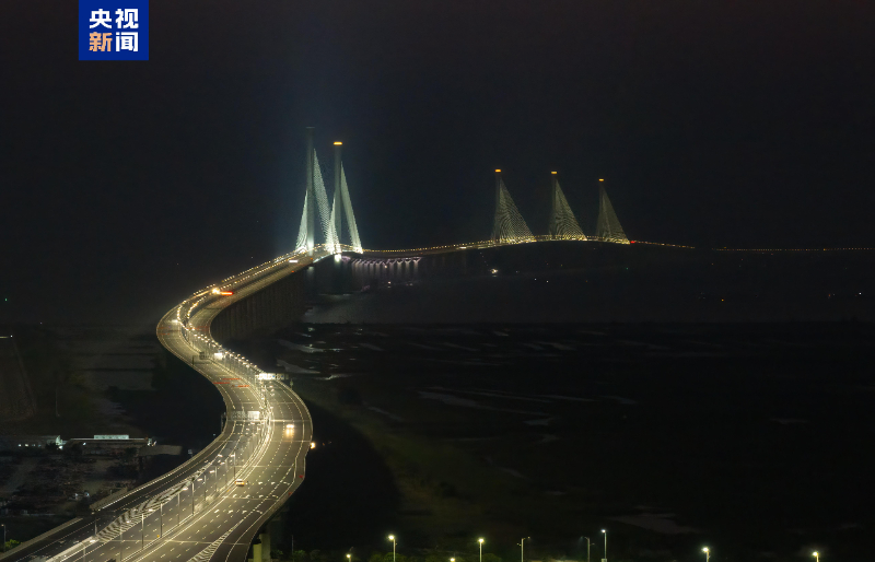 12月8日,黃茅海跨海通道全線亮燈,柔和明亮的燈光宛如海上銀河,在黃茅海海域璀璨生輝。