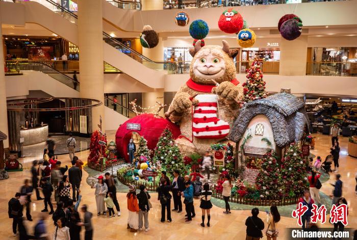 11月25日,香港金鐘一家商場擺放的「毛絨萌獸」大型互動裝置吸引眾多市民游客拍照。隨着年末臨近,香港街頭設置的各式裝飾物為城市增添節慶氛圍。(資料圖)中新社記者 侯宇 攝