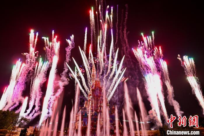 2024年12月31日晚,香港迪士尼樂園舉辦跨年慶祝活動。圖為當晚,香港迪士尼樂園舉行煙火表演迎接2025年。中新社記者 李志華 攝