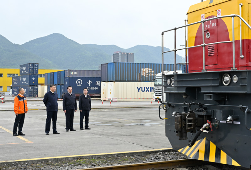 2024年4月22日,習近平總書記在重慶國際物流樞紐園區重慶鐵路集裝箱中心站考察。