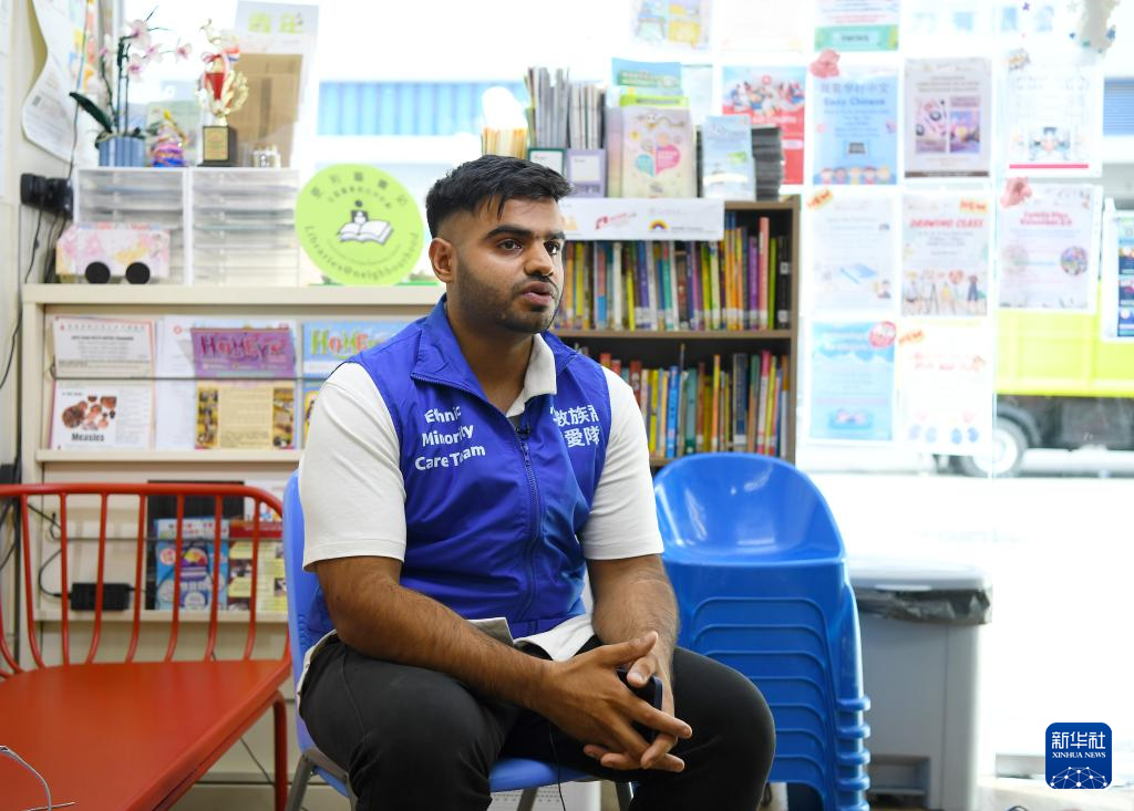 深水埗少數族裔關愛隊隊長阿赫桑·艾哈邁德接受記者採訪(2024年10月15日攝)。新華社記者 陳鐸 攝