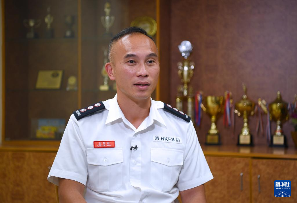 香港特區政府消防處助理消防區長金智恒接受記者採訪(2024年10月28日)。新華社記者 陳鐸 攝