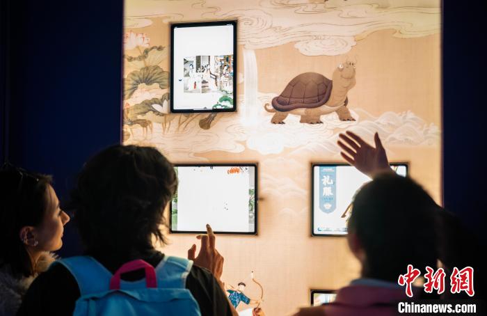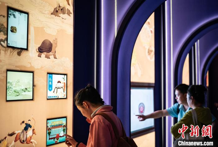 圖為觀眾在互動體驗區了解故宮博物院館藏文物的相關知識。中新網記者 侯宇 攝