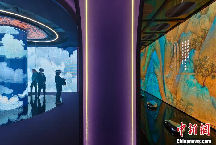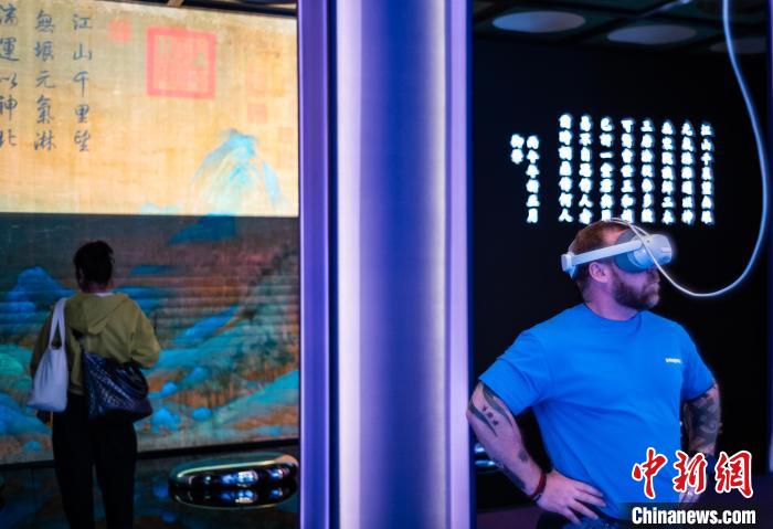 圖為觀眾在互動體驗區了解故宮博物院及館藏王希孟《千里江山圖》卷的相關內容。中新網記者 侯宇 攝