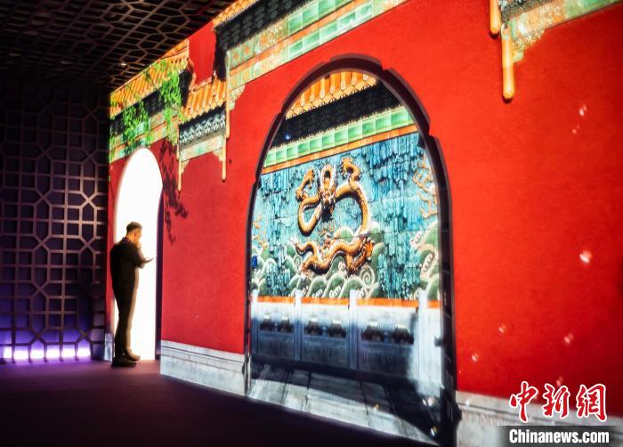 1月20日,「FLASH!故宮——數字故宮快閃展」正在香港法定古跡中環大館內舉行,這是故宮博物院首次以全數字形態亮相香港,布展融合「均衡對稱」的「中軸線」規劃思路和「天圓地方」的古代建築設計理念,呈現故宮承載的中華優秀傳統文化,再現宏偉建築、珍貴文物及綿延千年的文化脈絡。觀眾可通過「青綠山水——千里江山」「鑒藏珍玩」「角樓印象」「親制禦膳」等展項,觀賞國寶級畫作《千里江山圖》卷以及故宮眾多珍貴文物的細節。圖為觀眾經過以數字動態方式呈現的北京故宮博物院內的皇極門。中新網記者 侯宇 攝