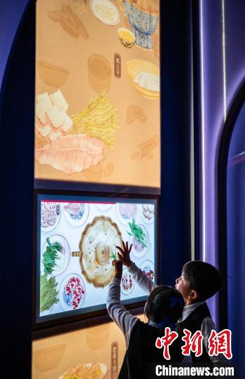 圖為小朋友在互動體驗區了解宮廷禦膳製作的相關內容。中新網記者 侯宇 攝