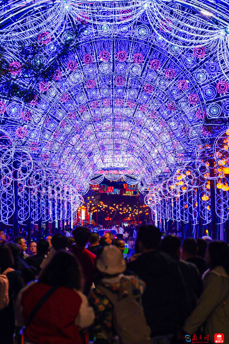 除爆款燈組,三大園區、五大主題,步步皆美景,景景皆不同。在「灣區畫卷·産業騰飛」園區,充滿科技感的燈組迸發出大灣區經濟發展的無限活力;在「海上絲路·國際交響」園區,曼妙的燈光帶領游客沉浸式體驗「一帶一路」沿線國家和地區的異域風情;在「灣區記憶·千年商都」園區,非遺技藝、特色美食和本土年俗元素相互融合,講述着大灣區古往今來的商都傳奇;在「青春無限·潮玩樂園」園區,賽博朋克風格與傳統新風潮跨界組「CP」,打造虛幻與現實的雙重夢境;在「共聚灣區·賀歲新春」園區,游客可以感受到濃厚的「年味」「粵味」「嶺南味」和「中國風」。