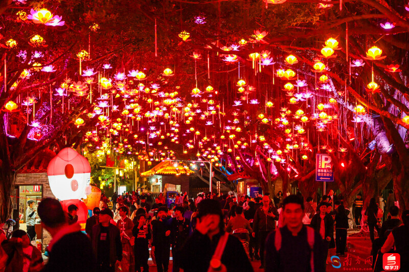 「3、2、1,亮燈!」晚上6時,在現場觀眾倒數中,南沙蒲洲花園、南沙天后宮景區、南沙濱海公園三個園區燈組同時亮起,璀璨燈光點亮整片夜空,絢麗色彩繪就光影盛宴,萬燈齊亮美輪美奐。