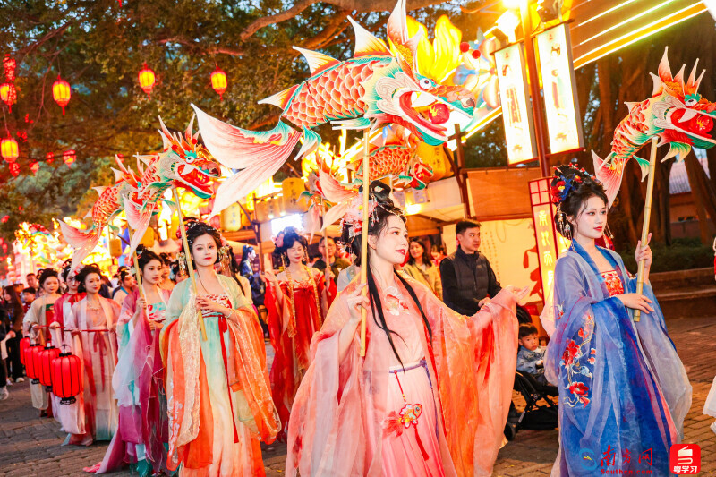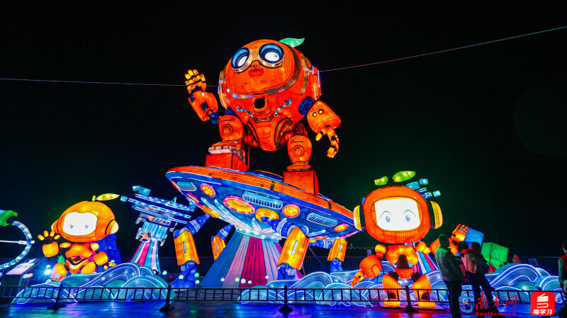 據悉,大灣區燈會以喜(禧)粵大道為軸,按「一軸五園區」的布局,一千多名非遺工匠精心打造218組燈景,超過10000盞綵燈,主游線路超3公里,全方位展示粵港澳大灣區11座城市的文化魅力。
