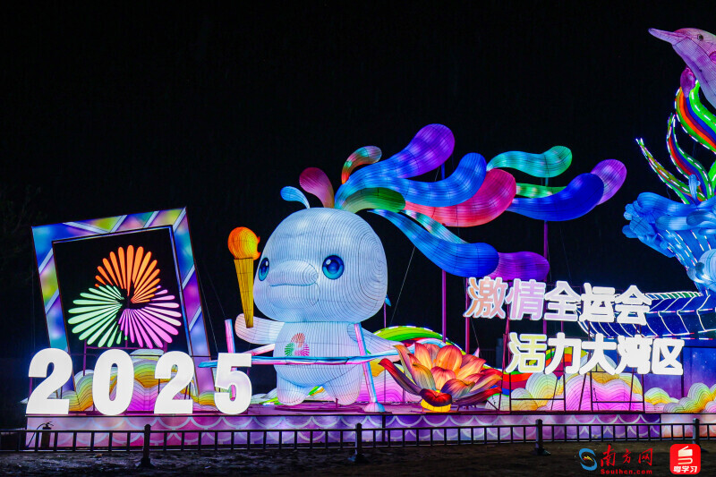 為迎接全國第十五屆運動會將在廣州舉辦,魅力全運會燈組以2025年為時空紐帶,緊密連接激情全運會與活力大灣區。IP形象「喜洋洋」與「樂融融」首次以綵燈形式呈現,高舉火炬引領大灣區體育盛會,傳遞團結奮進體育精神,借先進光影技術營造多彩氛圍,展現全運會的昂揚風采。同一時間,有望成為運動會場館的南沙全民綜合體進行首次亮燈測試,與大灣區燈會遙相輝映。
