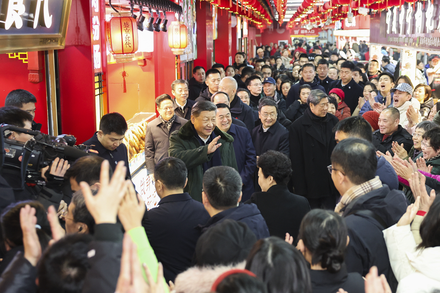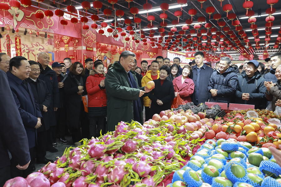 瀋陽大東副食品商場歷史悠久,富有特色的年節商品琳瑯滿目。23日上午,習近平來到這裏,察看多家店舖,頻頻同店主和顧客交流,詳細了解節日期間市場供應情況。大家見到總書記都十分激動,連聲歡呼「總書記好」!習近平對大家説,「菜籃子」、「米袋子」、「果盤子」是民生大事,現在物質豐裕,過年團圓更要讓大家吃得好、吃得健康。