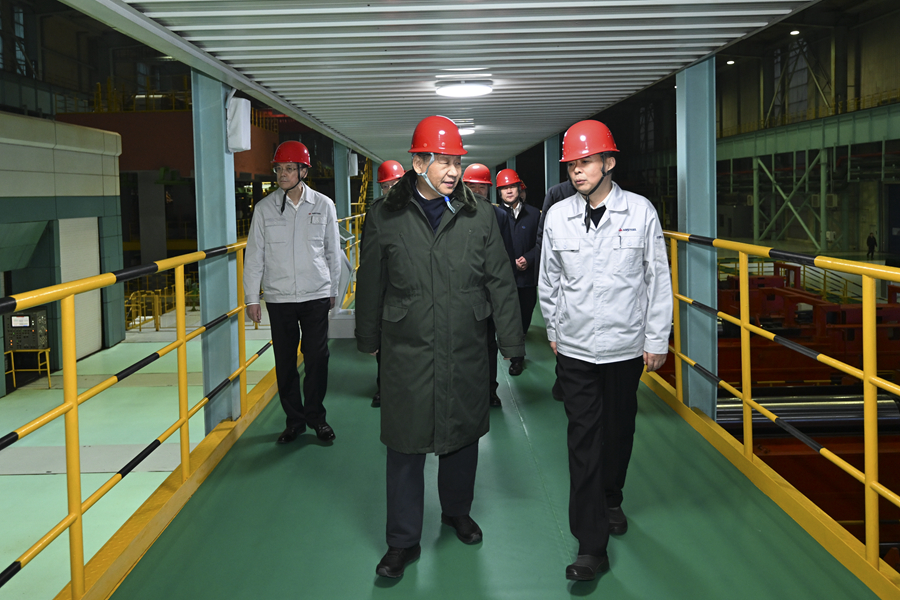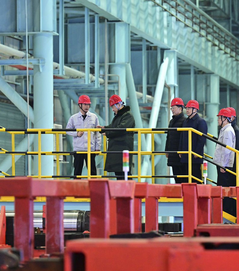 1月22日至24日,中共中央總書記、國家主席、中央軍委主席習近平冒着嚴寒來到遼寧,看望慰問基層幹部群眾。這是23日下午,習近平在本溪市考察本鋼板材冷軋總廠第三冷軋廠車間。新華社記者 謝環馳 攝