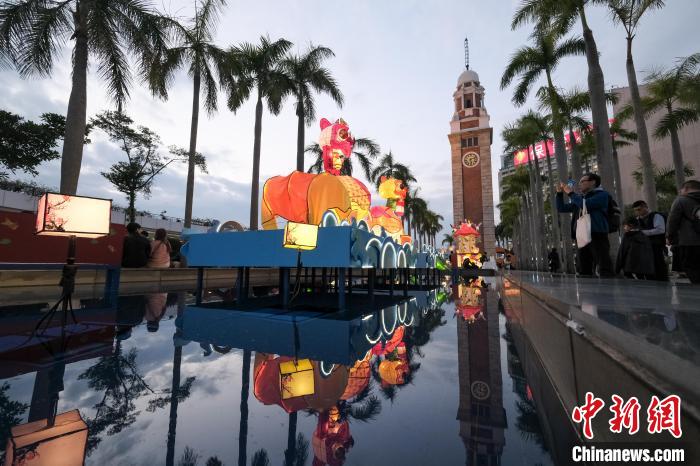 1月23日,春節綵燈展在香港文化中心露天廣場亮燈。圖為春節綵燈展。中新社記者 陳永諾 攝
