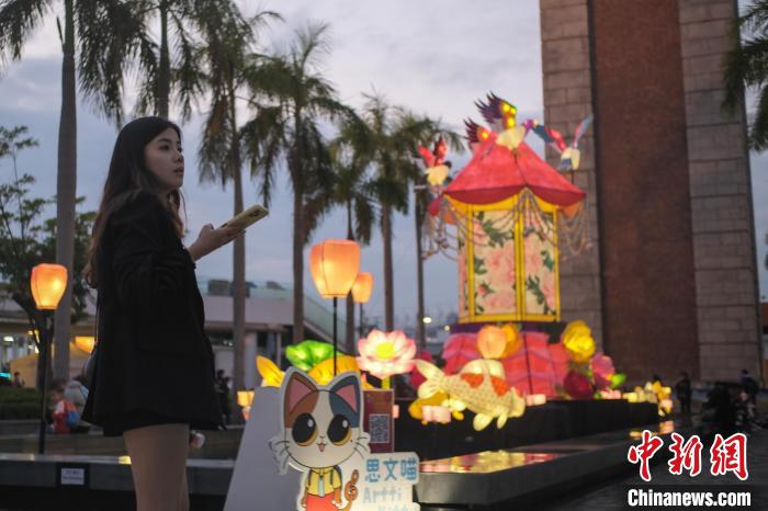 1月23日,春節綵燈展在香港文化中心露天廣場亮燈。圖為一位女士觀賞春節綵燈展。中新社記者 陳永諾 攝