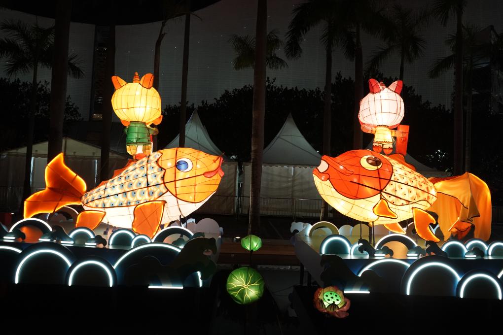 這是在香港文化中心露天廣場拍攝的綵燈(1月27日攝)。新華社記者 褚萌萌 攝