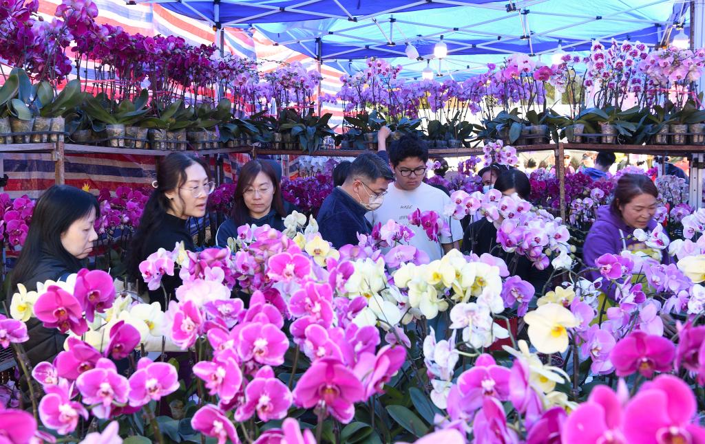 1月27日,市民在香港年宵花市上選購鮮花。新華社記者 陳鐸 攝