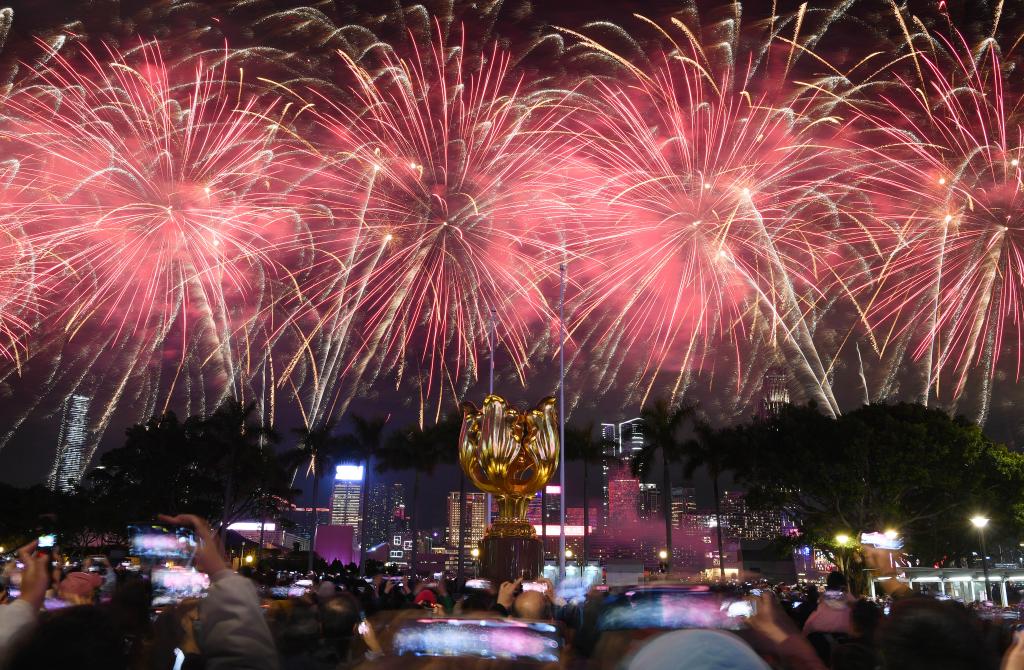 1月30日晚,隨着一朵朵璀璨奪目的煙花在香港維多利亞港上空綻放,香港2025年農曆新年煙花匯演如期舉行。市民和游客在浪漫喜慶的氛圍裏共慶新春佳節。
