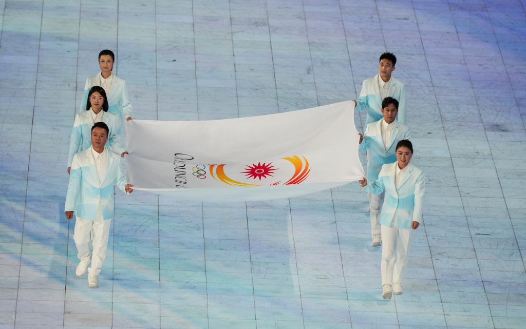 六名運動員代表共執亞奧理事會會旗入場。1996年,正是在哈爾濱,中國代表團首次在亞冬會實現金牌榜和獎牌榜「雙居首」;29年後,哈爾濱成為中國首座「雙亞冬之城」,中國冰雪運動正以更加自信的姿態步入舞台中央。