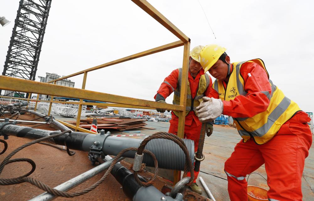 2月7日,工人在獅子洋大橋施工作業。新華社記者王瑞平 攝