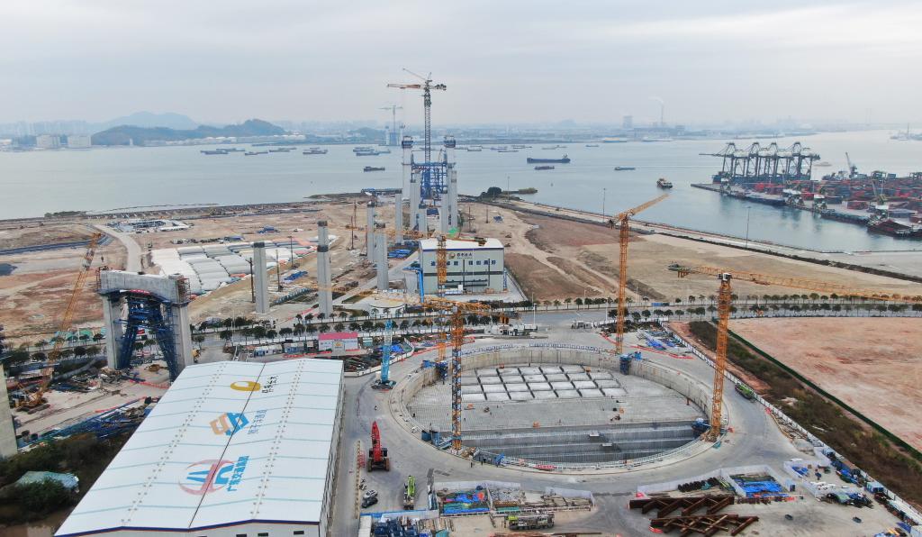 在珠江口西岸的廣州南沙區,獅子洋大橋的西錨碇一個月前剛完成填芯施工。目前,獅子洋大橋的東、西錨碇雙雙進入頂板施工的新階段。