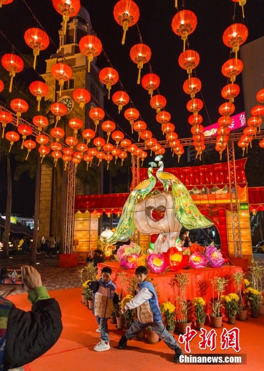 2月9日晚,農曆正月十五元宵節臨近,香港文化中心露天廣場舉辦主題為「華燈·傳承」的「乙巳年元宵綵燈會」吸引市民與游客參觀拍照。中新社記者 侯宇 攝