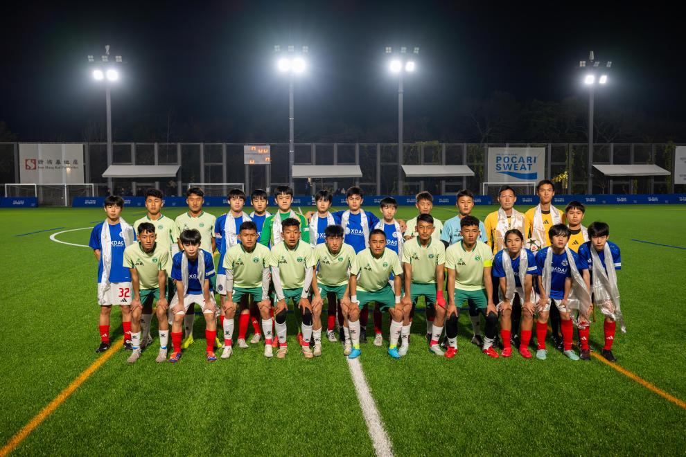 當天比賽香港球員身穿藍色球衣,西藏球員則身穿綠色球衣,雙方在場上積極拼搶,展現出精湛的足球技術和頑強的拼搏精神,引得觀眾們連連叫好。最終,香港東方體育會足球隊U16梯隊獲勝,雙方球員賽後合影留念。