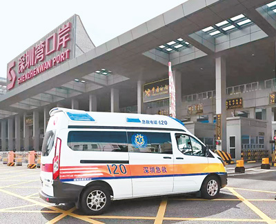 圖為大灣區跨境直通救護車在深圳灣口岸過關。香港特區政府醫務衞生局供圖