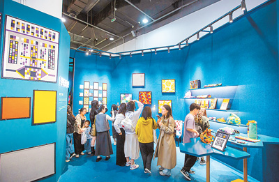 在去年舉辦的第十八屆杭州文化創意産業博覽會展區內,觀眾選購香港文化創意産品。袁歡歡攝(人民視覺)