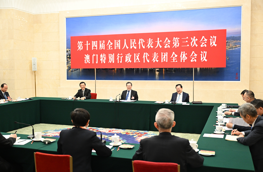 3月7日上午,中共中央政治局常委、國務院副總理丁薛祥參加十四屆全國人大三次會議澳門代表團審議。新華社記者 李響 攝