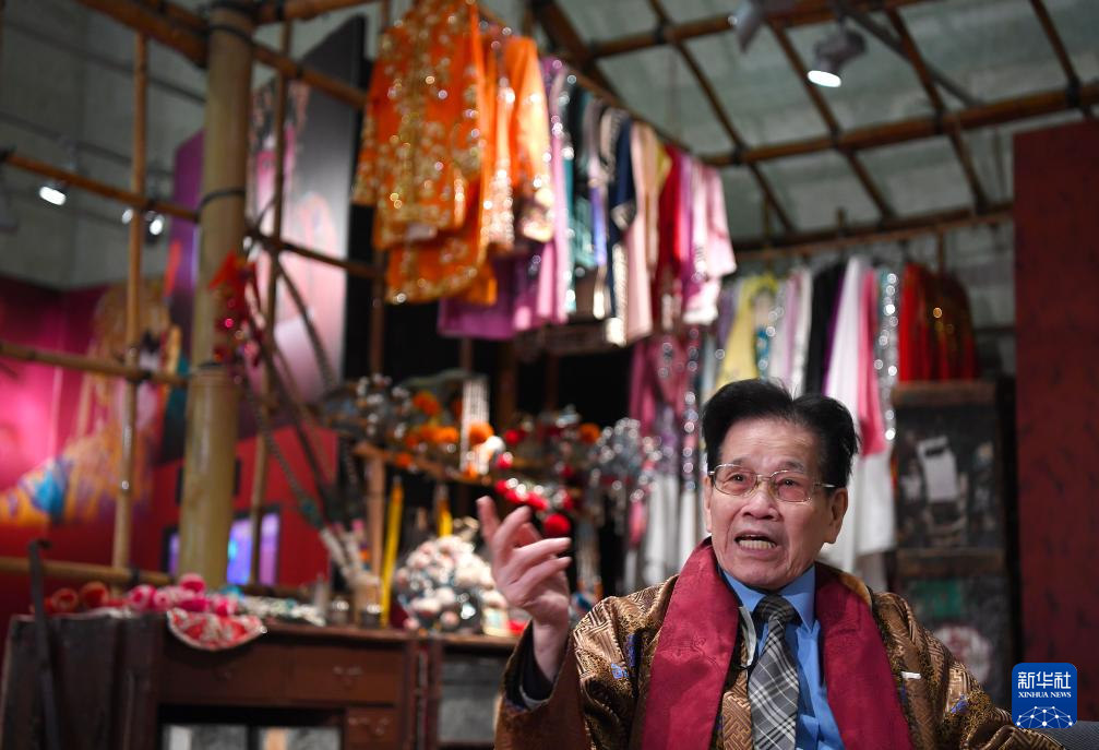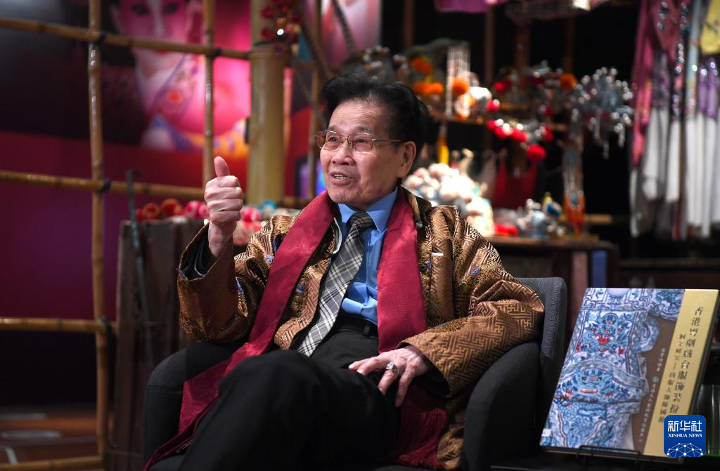1月14日,香港粵劇帽飾老行尊陳國源在香港文化博物館粵劇館接受記者採訪。 新華社記者 陳鐸 攝