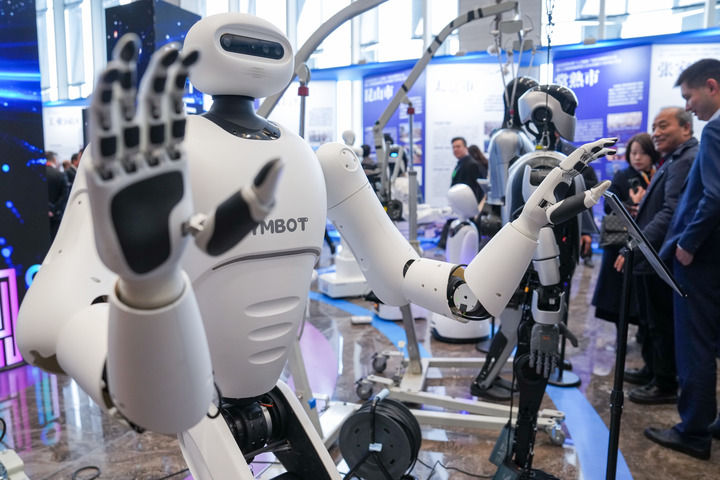 2025年2月14日在2025年蘇州市「人工智能+」創新發展推進大會暨人工智能賦能新型工業化深度行(蘇州站)活動現場拍攝的人形機器人。新華社記者 李博 攝