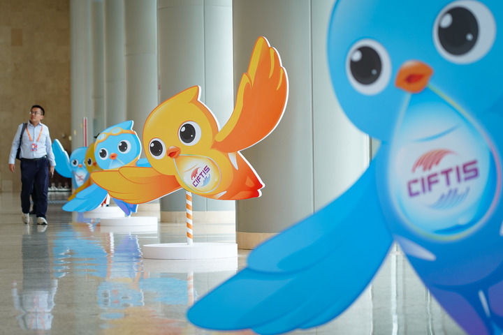 2024年9月11日在國家會議中心拍攝的服貿會吉祥物「福燕」形象。新華社記者 陳鐘昊 攝