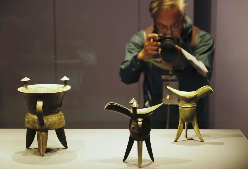 這是3月18日在香港故宮文化博物館「流動的盛宴——中國飲食文化」特展上拍攝的飲食器皿。新華社發(王申攝)