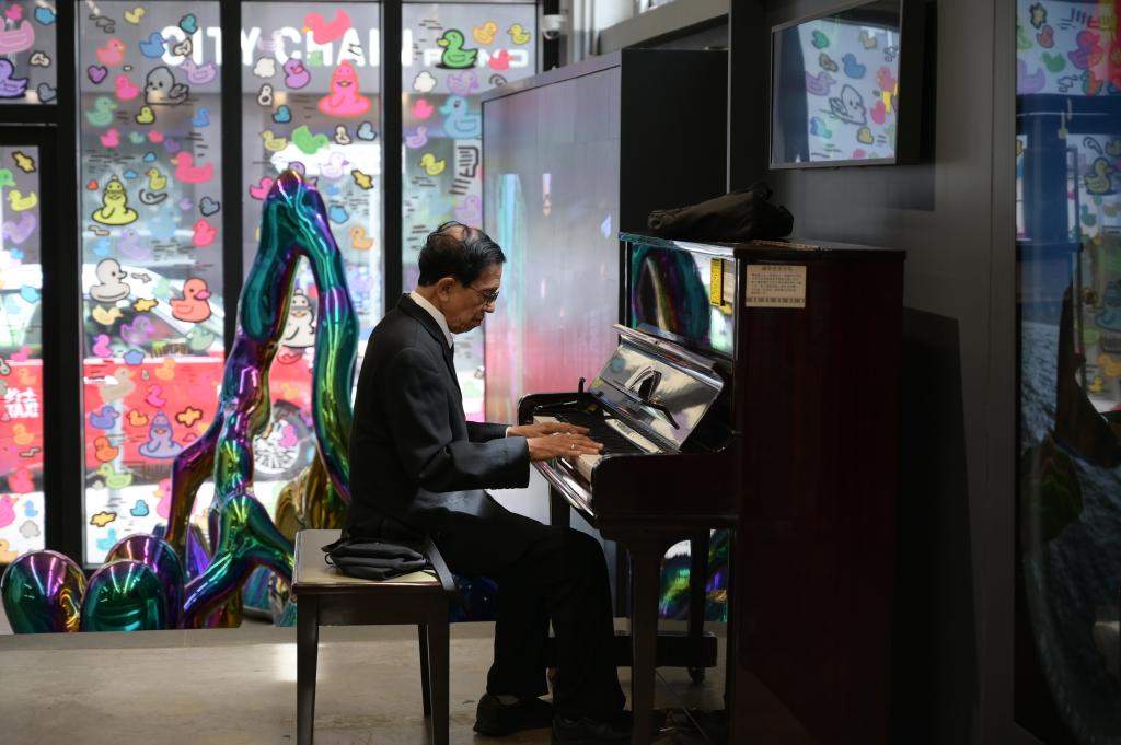 「共享鋼琴」邊時常坐著不同年紀、不同職業甚至不同國籍的人士,粵語、普通話、英語交織在空氣中,和輕柔的鋼琴音符纏繞在一起,伴着對生活的希望在空中蕩漾。
