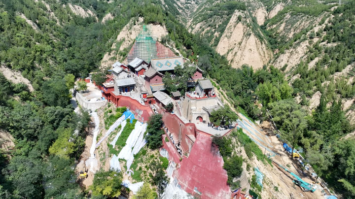 這是2024年9月12日拍攝的山西隰縣小西天景區(無人機照片)。新華社記者 張哲 攝