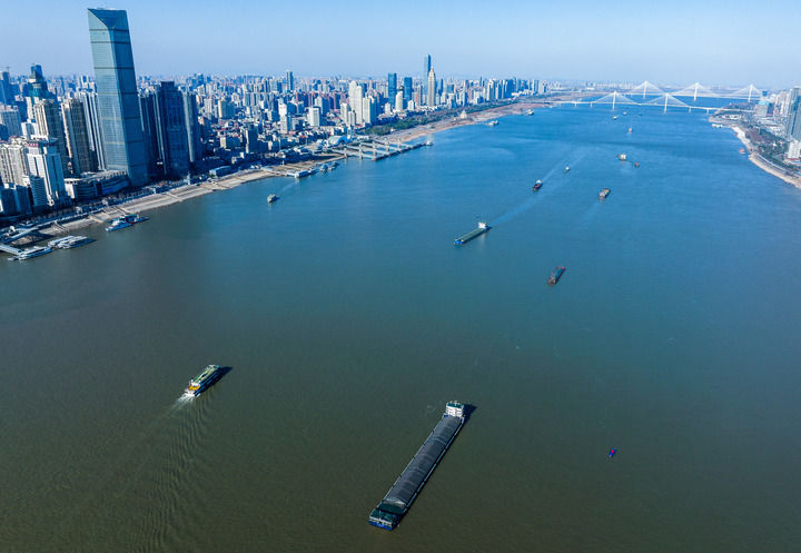 這是2024年1月23日拍攝的長江武漢江段水域(無人機照片)。新華社記者 肖藝九 攝
