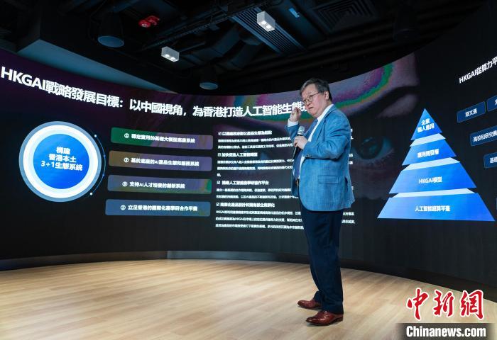 2月25日,香港科技大學InnoHK香港生成式人工智能研發中心(HKGAI)發布生成式人工智能大模型HKGAI V1,這是中國首個基於DeepSeek進行全參數微調、持續訓練産生的大模型。圖為香港科技大學首席副校長、香港生成式人工智能研發中心主任郭毅可介紹HKGAI V1大模型相關內容。(資料圖)中新社記者 侯宇 攝