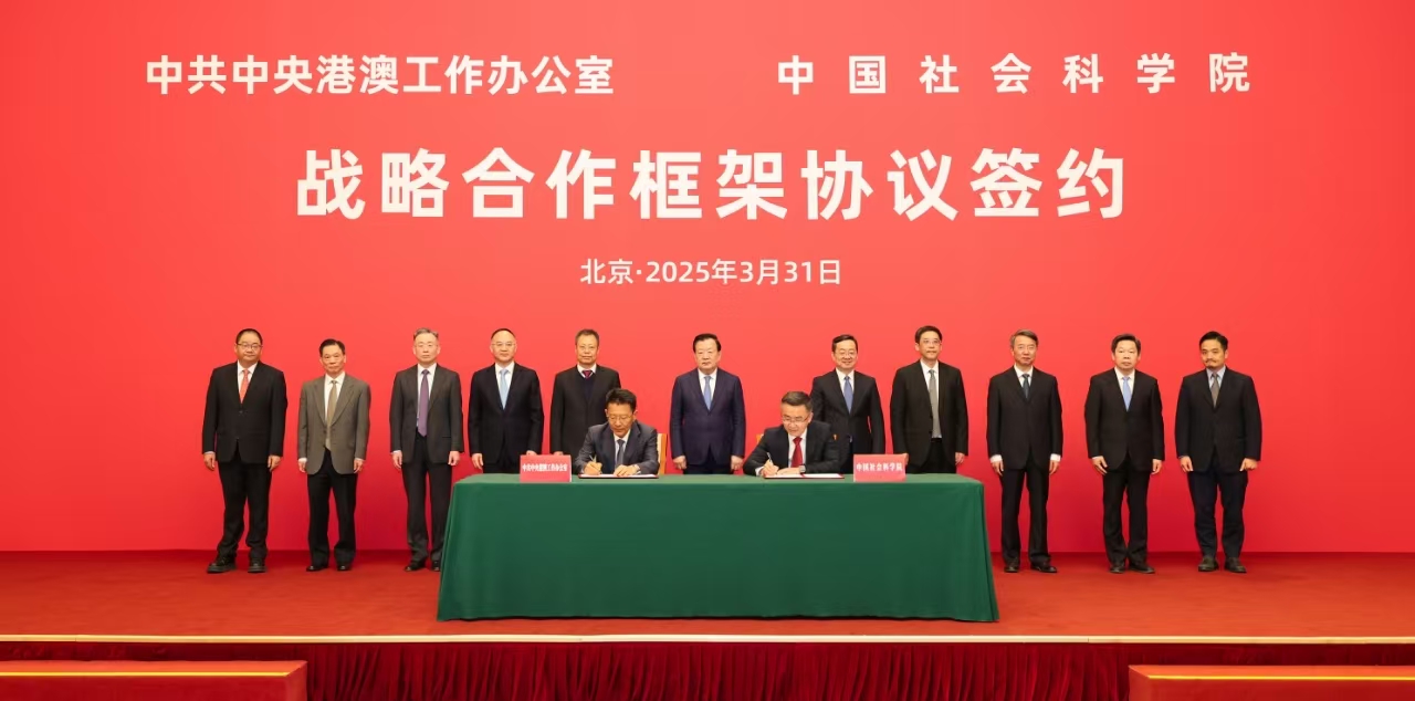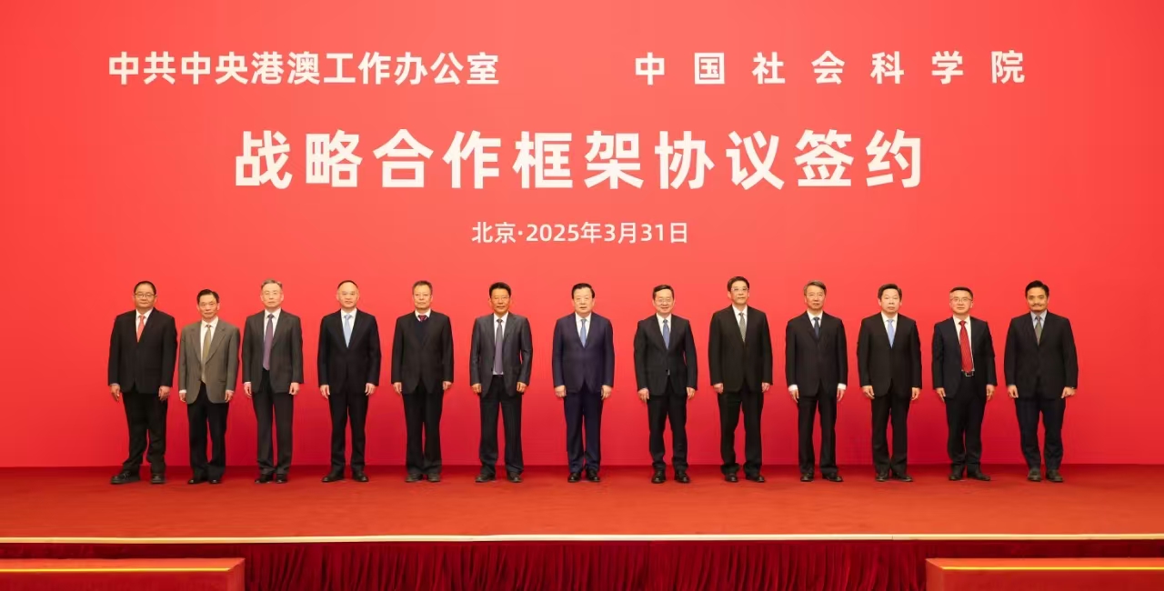 3月31日下午,中共中央港澳工作辦公室與中國社會科學院在北京簽署戰略合作框架協議。中共中央港澳工作辦公室主任、國務院港澳事務辦公室主任夏寶龍,中國社會科學院院長、黨組書記,中國歷史研究院院長、黨委書記高翔出席見證簽約儀式。