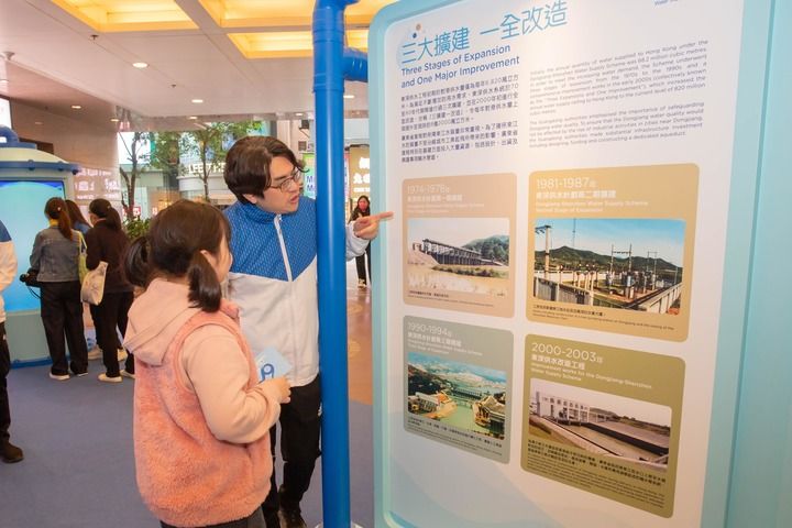 香港特別行政區政府水務署以「一脈相連 飲水思源」為主題,在香港銅鑼灣時代廣場啟動「東江水供港60周年」專題巡迴展覽。這是展覽現場(2025年1月11日攝)。新華社發(香港特別行政區政府水務署供圖)