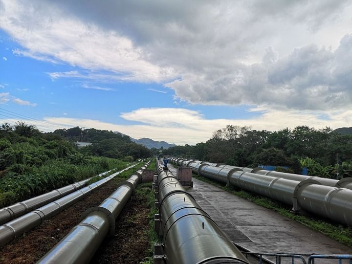 這是木湖原水抽水站的巨型輸水管(資料照片)。東江水抵港第一站是位於香港上水的木湖原水抽水站,它是香港配合東江供水工程而興建的重要設施。新華社發(香港特別行政區政府水務署供圖)