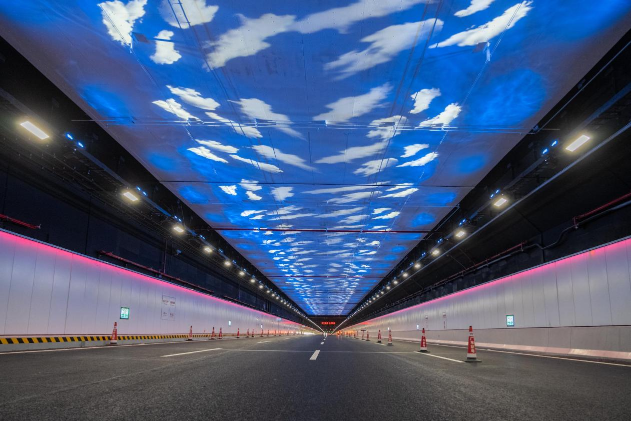 在橫琴粵澳深度合作區建設的持續推進下,近年來,橫琴多條海底隧道相繼開工建設並逐步落成,十字門隧道就是橫琴島對外連接的三條海底隧道之一,也是距離珠海主城區、橫琴核心區最近的通道。該隧道全長2.7公里,是中國國內最大斷面跨海域盾構隧道,2023年7月26日通車以後,從橫琴金融島至珠海灣仔區域三分鐘可達,極大緩解橫琴大橋的交通壓力,提升橫琴粵澳深度合作區對外通行能力。圖為十字門隧道。