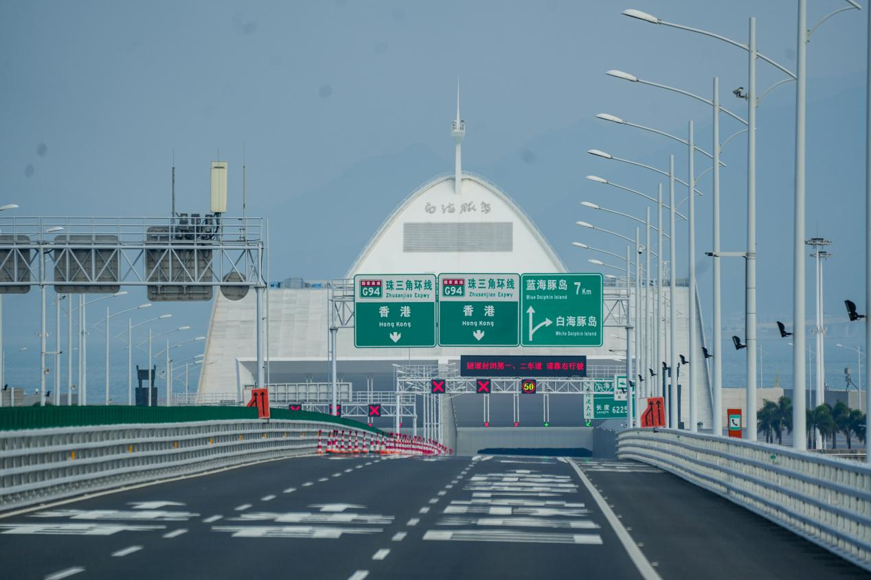 港珠澳大橋是粵港澳三地首次合作建設的當今世界最長、施工難度最大的世界級超大型跨海交通工程,連接了香港、澳門及珠海三地。港珠澳大橋全長29.6公里的主體工程中有6.7公里為海底隧道,採用深埋沉管隧道技術,由5600余米長的33個沉管組成,沉管平均重達8萬噸,需要在岸上完成預製後,運至約7海里外的指定位置,再下放至水下40余米深處進行對接安裝,最終實現隧道內部滴水不漏,這一成就在工程史上堪稱奇蹟。圖為港珠澳大橋海底隧道入口。